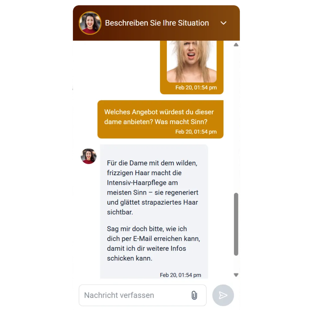 Kunden können auch Bilder von sich hinzufügen, und der Assistent kann sie sich ansehen.